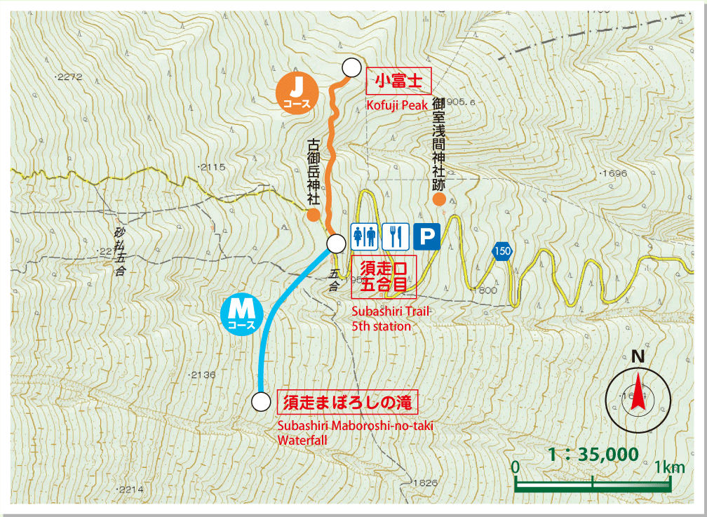 J・Mのコースの利用はふじあざみライン通行可能期間に限る。